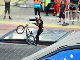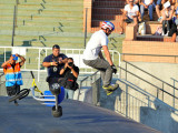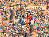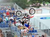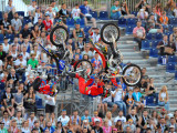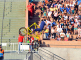 FMX, BMX, Skate, Scooter, Quads, Rollers y artilugios de lo más variado, entre los que cabe una tabla de Snowboard con ruedas o un carrito de minusválido, desfilaron delante de los miles de espectadores que llenaban el auditorio realizando las más increíbles figuras que uno pueda imaginarse y haciendo que los espectadores, a partir de ahora, se crean un poco más las imágenes que se ven en las películas de acción, esas de las que no puedes evitar un “venga vamos, como si se pudiera hacer eso con una moto, estos están flipaos”.