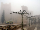 El viaje de Cela comenzaba en Guadalajara, y seguía, 18 Km. al norte, con la población de Torija, donde nosotros comenzamos la ruta de hoy. Presidida por su histórico castillo medieval, la jornada en Torija empieza con una niebla que, como dicen los ingleses, podemos calificar de auténtico “puré de guisantes”, hace días que llueve, sigue lloviendo y, empezamos a prever que la ruta de hoy va a ser “entretenida”, como así fue finalmente.