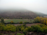 La niebla va haciendo ademanes de querer levantar, que no irse, dejando un cielo gris plomizo nada atractivo, pero que al menos nos permite ver hacia donde vamos y que en las fotos salga algo de paisaje.