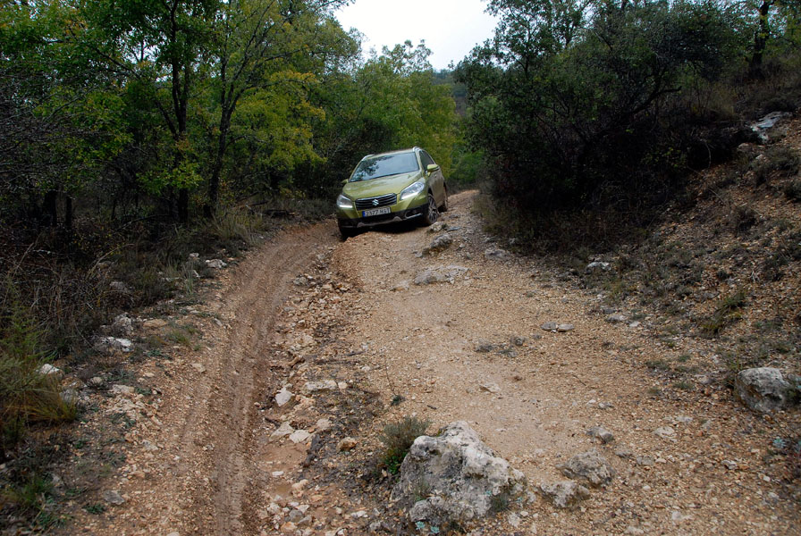 Ninguna de estas circunstancias llega a poner en aprietos de momento al Suzuki SX4 S-Cross que hoy nos acompaña, y tan solo tenemos que ser cuidadosos a la hora de pasar los escalones de piedra que nos vamos encontrando para no dañar los bajos del vehículo.