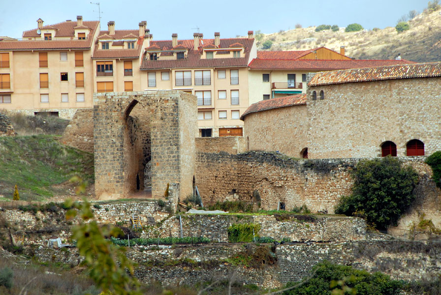 La villa estuvo murada totalmente, y en su extremo sur, en la parte más baja del pueblo, se colocó el castillo que siempre hizo de finca de recreo y residencia, más que de un auténtico baluarte guerrero. De la antigua muralla quedan importantes vestigios: la puerta de Cozagón, hacia occidente, de esbelto arco apuntado, y la puerta de la Cadena, en el extremo opuesto de la población. Entre ambas se extiende un largo y bien plantado lienzo de muralla, en algunos tramos todavía cargado de almenas. La torre de San Felipe es una antigua estructura de esta muralla, luego aprovechada para torre de dicha iglesia.
