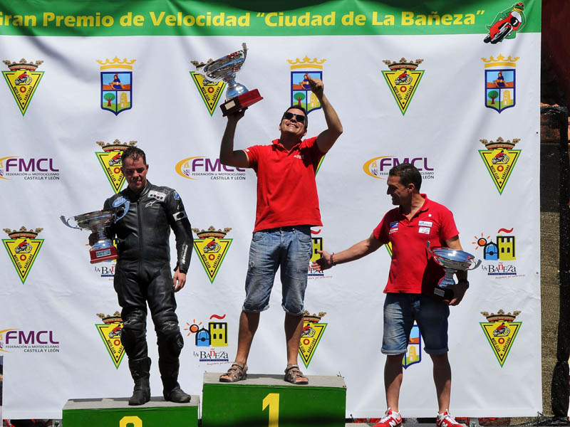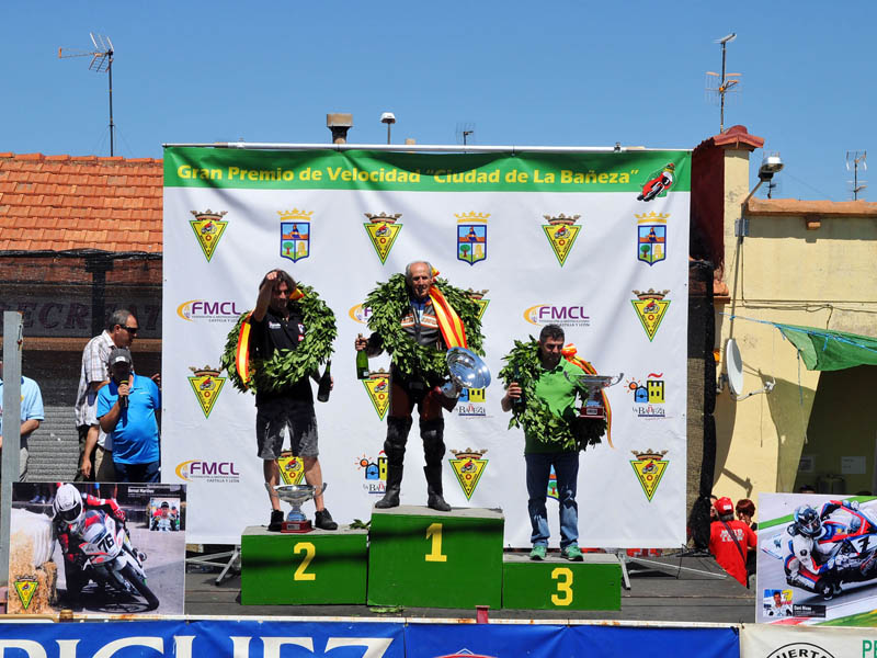 Por otra parte, el cántabro Pedro Múgica, quién hace ya nada menos que 35 años ganara en La Bañeza por delante del mismísimo Aspar y que este domingo, con 65 años cumplidos, fue capaz de imponerse en la categoría de 4T.La Bañeza 2015 184