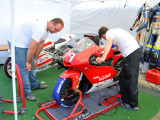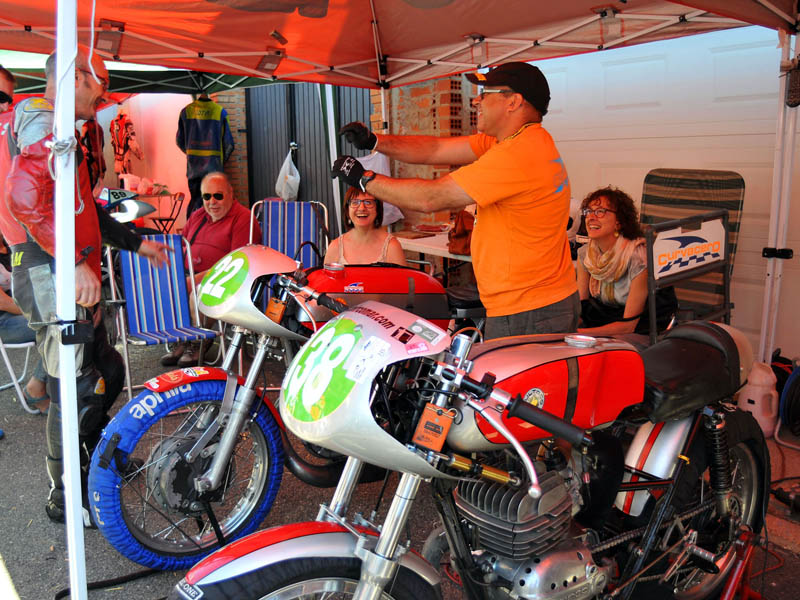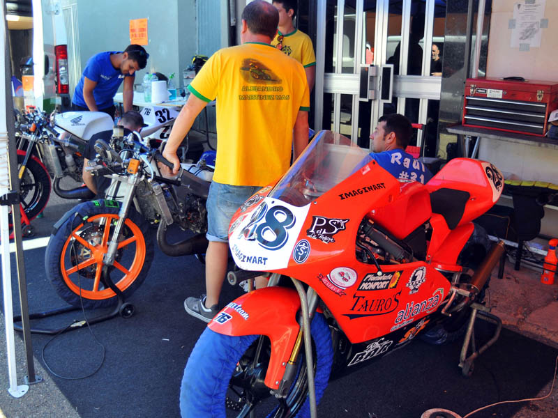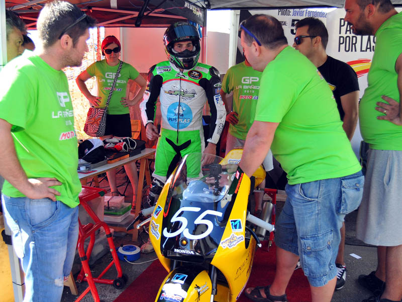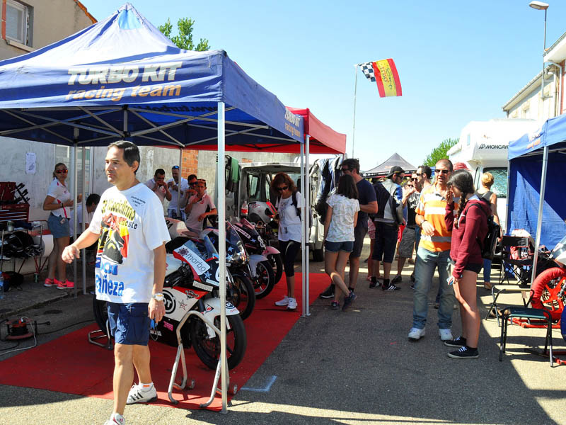 Metiéndonos en ambiente, ya desde el viernes es muy recomendable darse una vuelta por la calle de boxes, paralela a la recta de meta y abiertos a todos los aficionados. Allí podremos hablar con pilotos y mecánicos, ver las motos que correrán, sentir el olor y el sonido de las carreras como eran antes, sin contratos millonarios, intereses políticos o pilotos que solo corren por “la pasta”.La Bañeza 2015 186