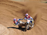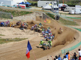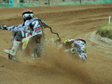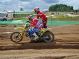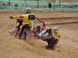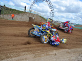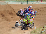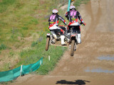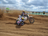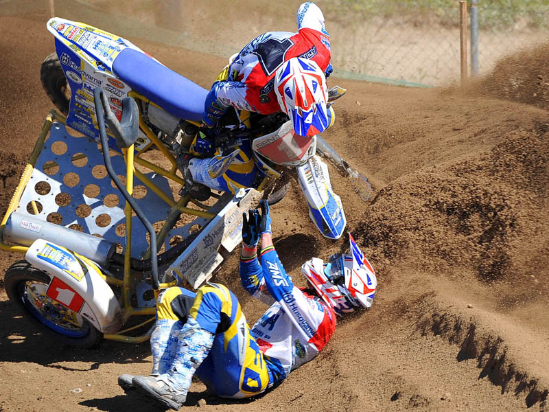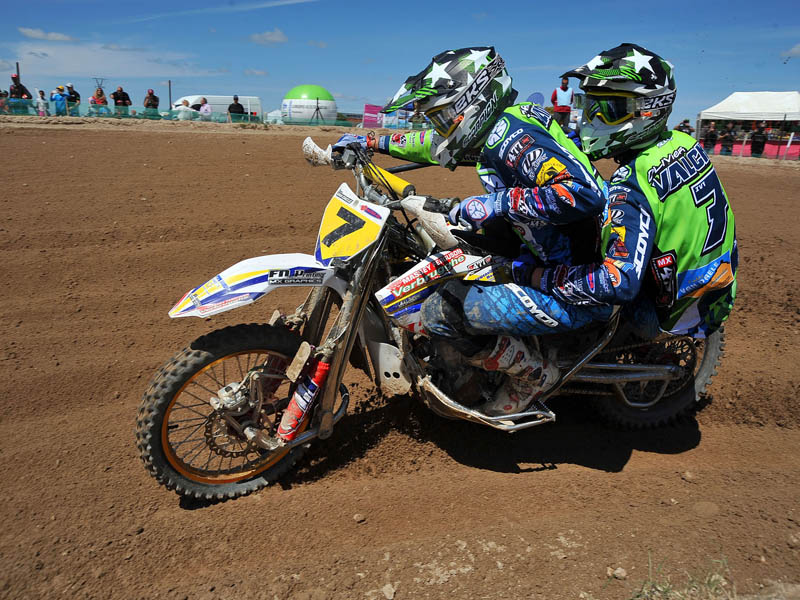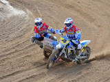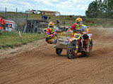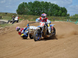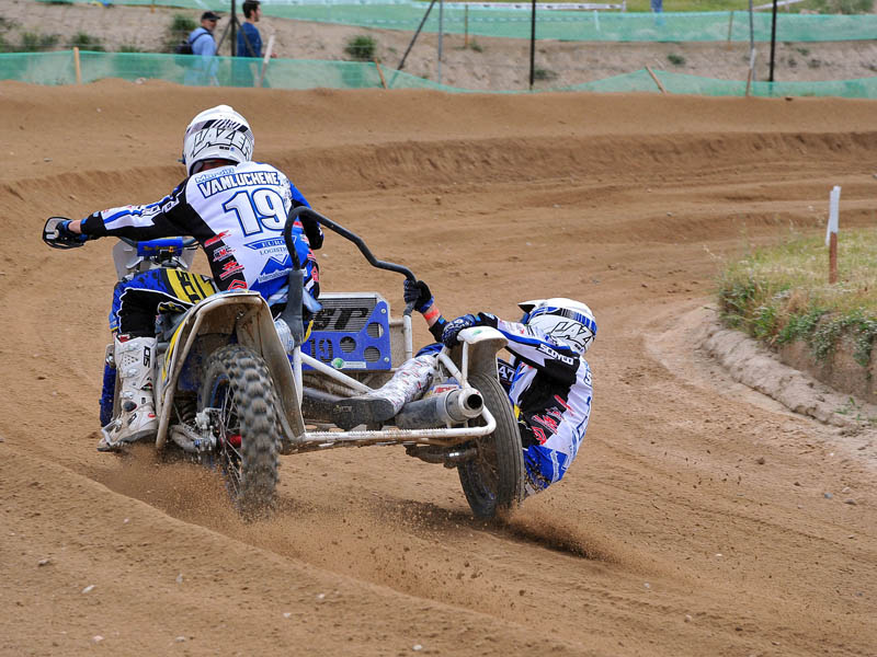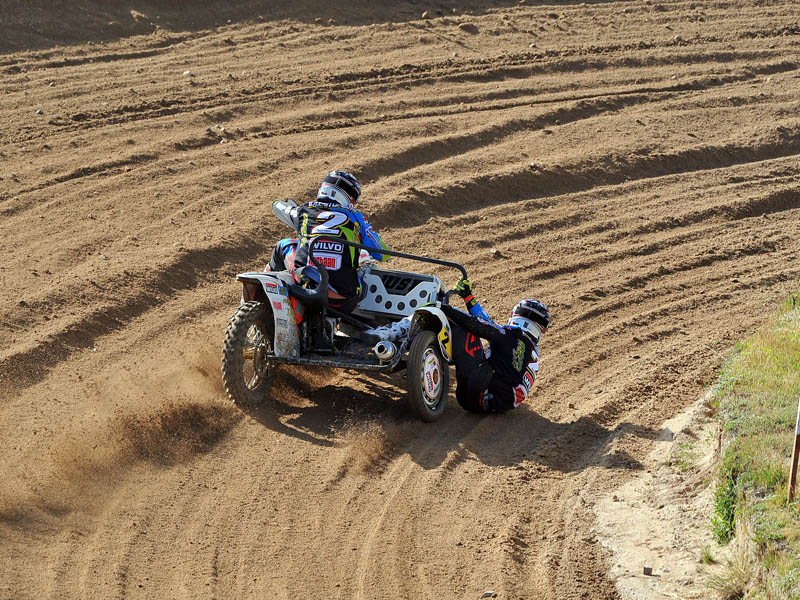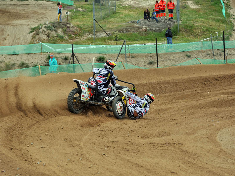 Pero a pocos giros para el final los actuales campeones del Mundo, Adriaenssen y Van den Bogaart, protagonizaron la caída más espectacular de todo el fin de semana, cuando clavaron la rueda delantera en un montículo de arena formado en una curva, volcando hacia delante y siendo embestidos por Bax y Stupelies, que no pudieron evitarlos, lo que daría el liderato de la manga (y del campeonato), a la pareja formada por los franceses Giraud y Musset, que unas vueltas antes habían perdido el liderato de la carrera.