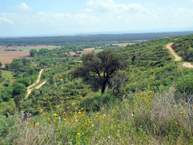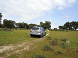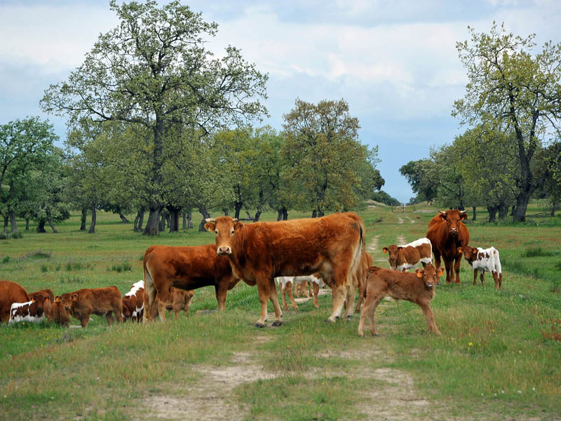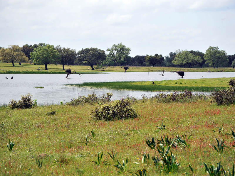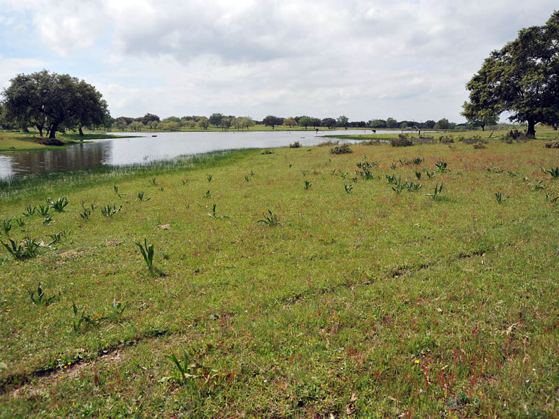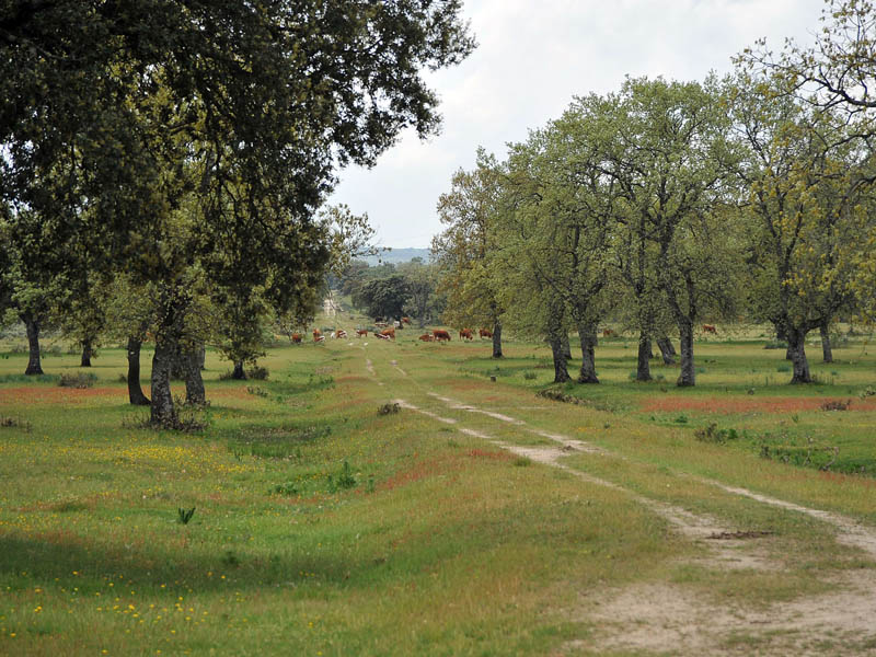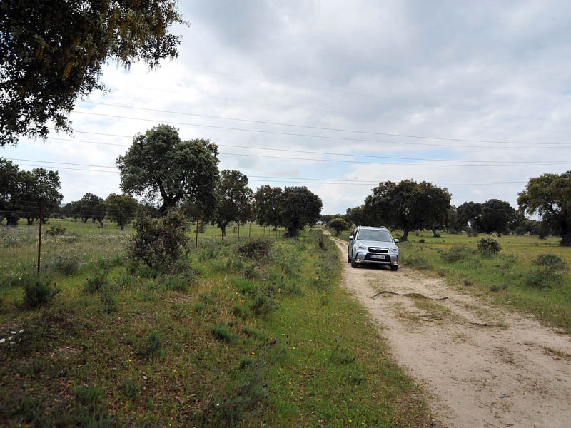 Tras salir de Navalmoral hacia el norte por la pista que sale junto al cementerio, pronto nos encontraremos metidos entre húmedas pistas y el verde del césped que alfombra la dehesa por la que nos introducimos.