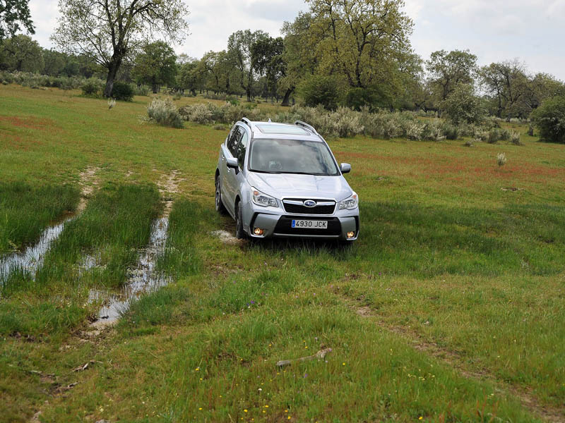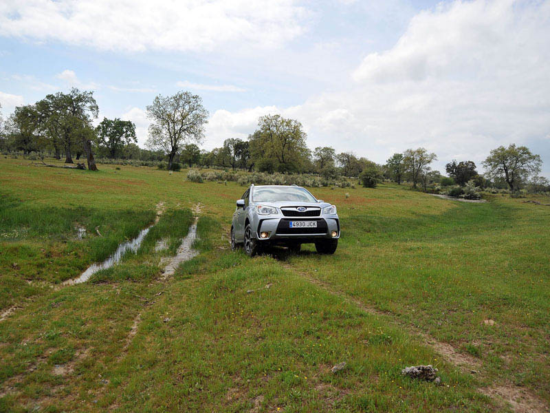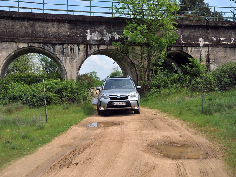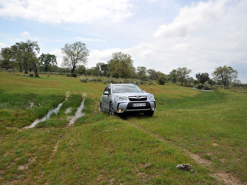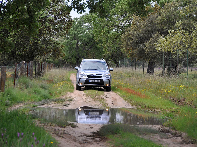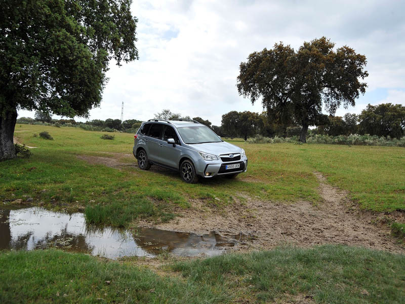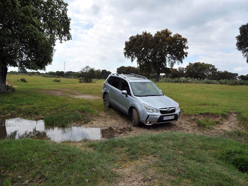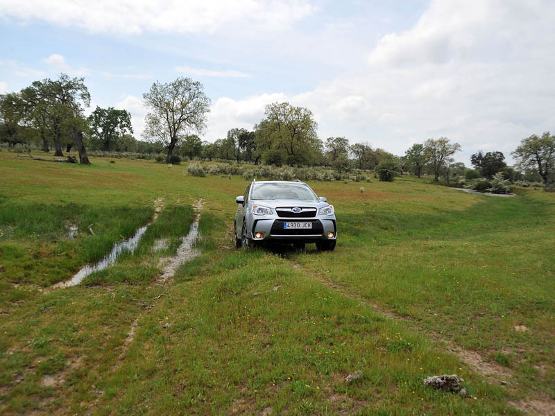 Profundos charcos y un terreno más blando y deslizante de lo que aparenta, que hace trabajar el sistema de tracción desde el primer momento, nos hacen temer que “el tema” se pueda complicar más de la cuenta; sin embargo, el Forester, a pesar de las habituales ruedas de asfalto con las que va calzado, una y otra vez consigue avanzar y la ruta nos va ofreciendo sus primeras fotos.