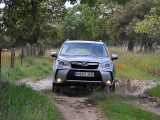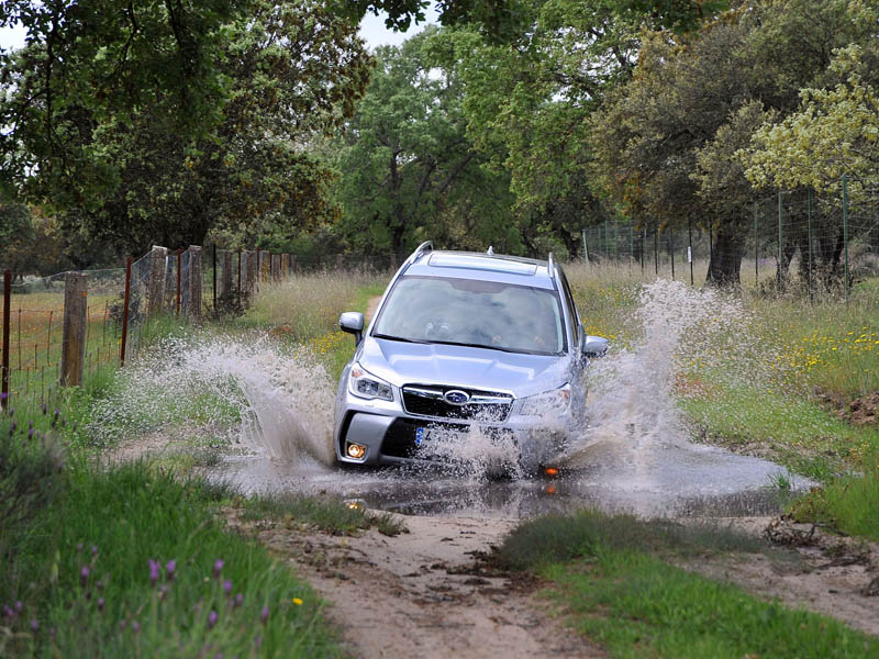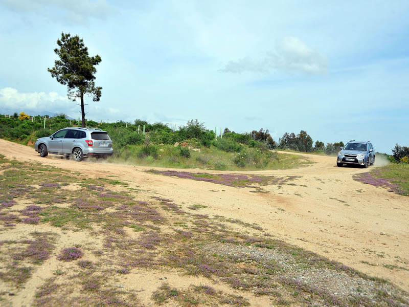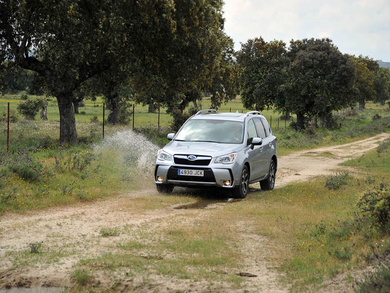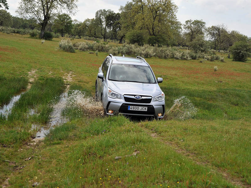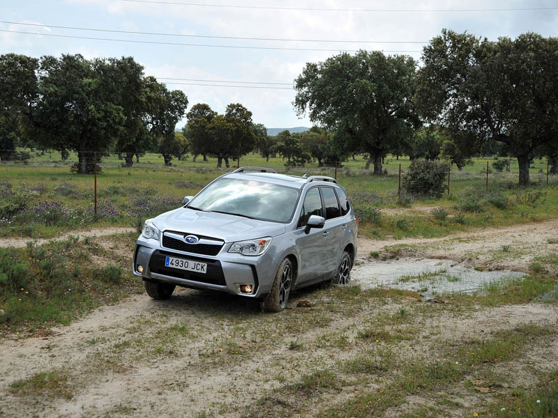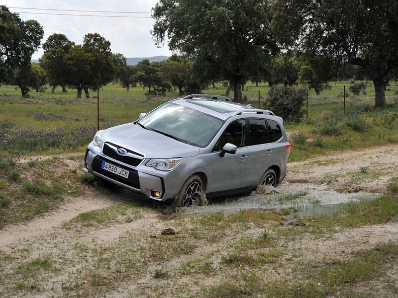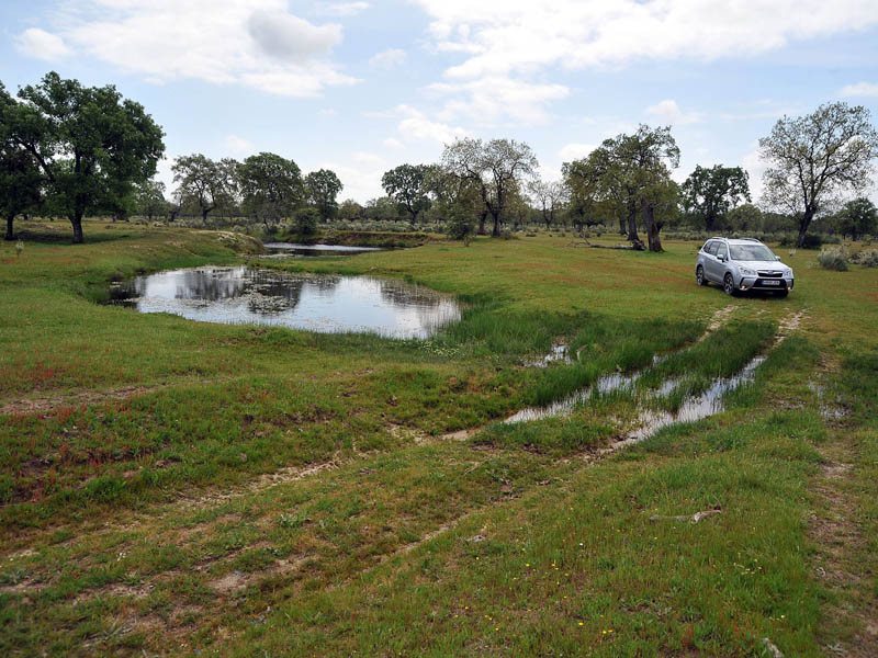 Profundos charcos y un terreno más blando y deslizante de lo que aparenta, que hace trabajar el sistema de tracción desde el primer momento, nos hacen temer que “el tema” se pueda complicar más de la cuenta; sin embargo, el Forester, a pesar de las habituales ruedas de asfalto con las que va calzado, una y otra vez consigue avanzar y la ruta nos va ofreciendo sus primeras fotos.