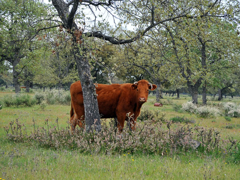 Sin embargo, una y otra vez nos encontramos con caminos sepultados por sembrados, vallas cerrando los caminos con carteles de “prohibido el paso” de más que dudosa legalidad, que una vez tras otra nos devuelven a la carretera y que nos dejan, acordándonos de los difuntos de algunos señoritos extremeños, que han cogido la mala costumbre de ponerle puertas al campo.