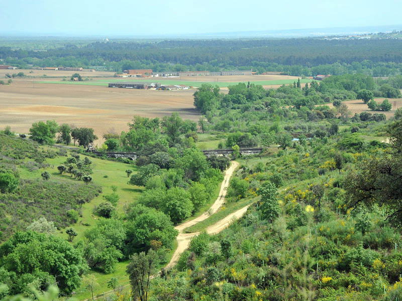 Unos minutos después, giraremos a la derecha para seguir la estrecha carretera paralela al canal, el cual atravesaremos pasando bajo un acueducto que nos permitirá coger altura y disfrutar de algunas estupendas vistas de los alrededores.