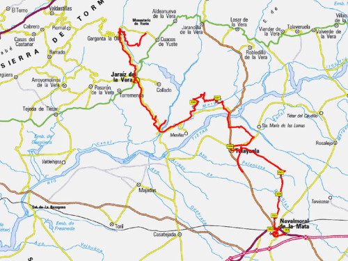 Finalmente, desde Garganta la Olla, tomaremos la carretera que nos lleva a Cuacos de Yuste, y antes de llegar, nos encontraremos con el Monasterio de Yuste, punto y final de nuestra ruta de hoy.