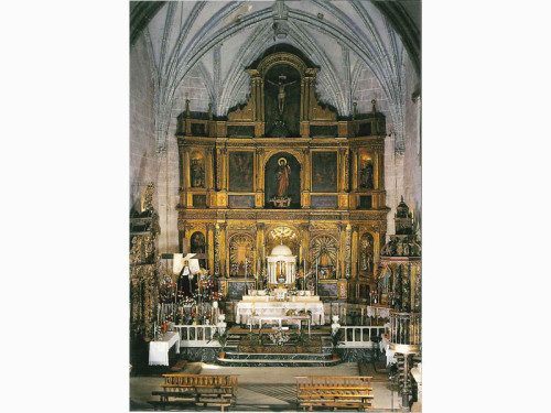 El Retablo Mayor, de dos cuerpos y ático, es de madera sobredorada y está dotado de columnas estriadas, rematadas en capiteles corintios. Consta de cinco calles con imágenes de talla y cuadros pintados al óleo en los intermedios. Su estilo renacimiento se puede datar a finales del siglo XVI o principios del XVII.