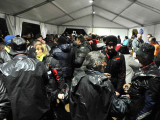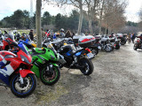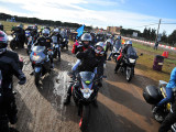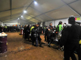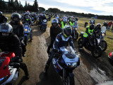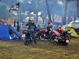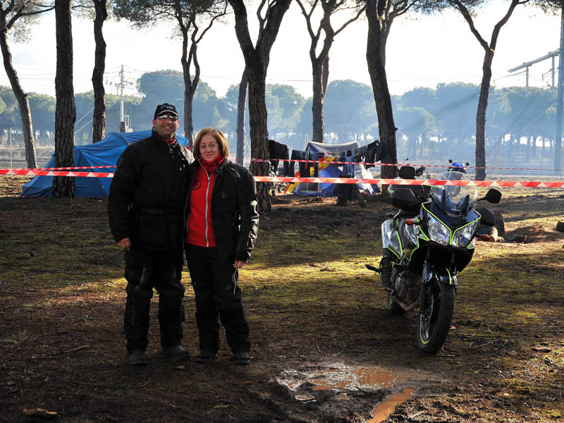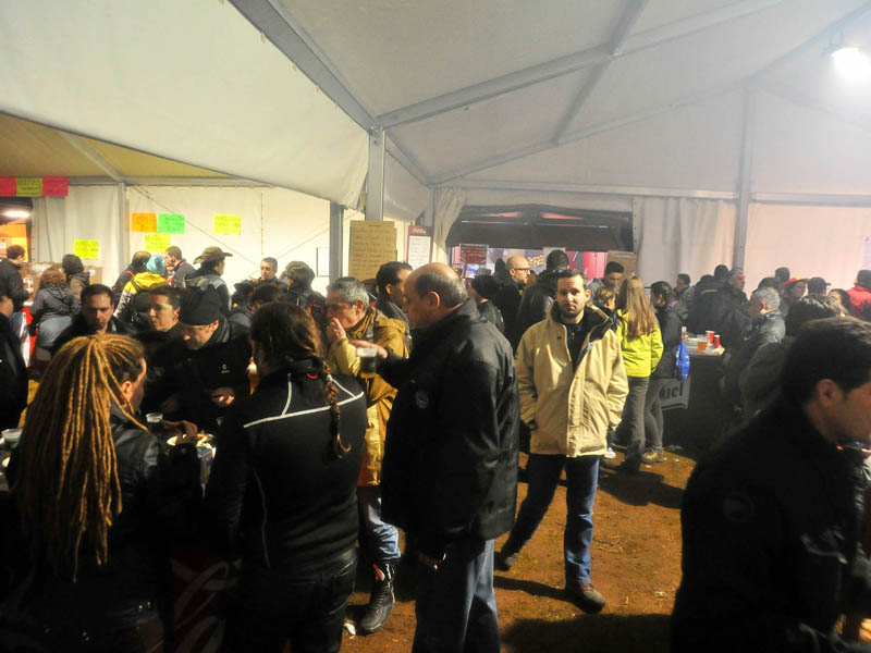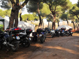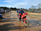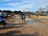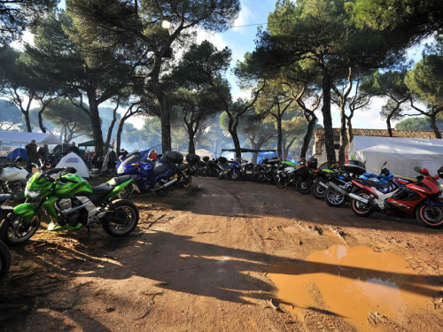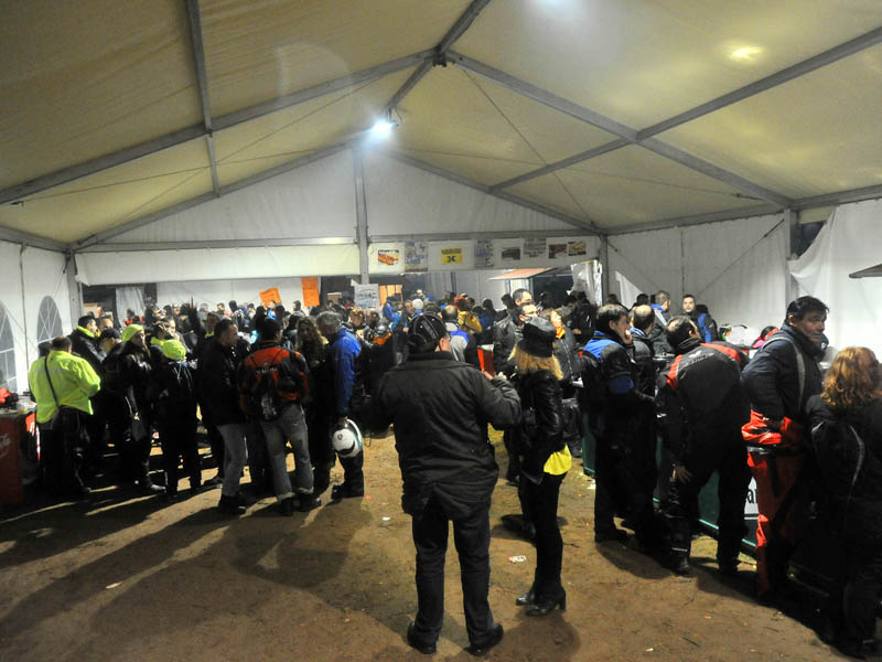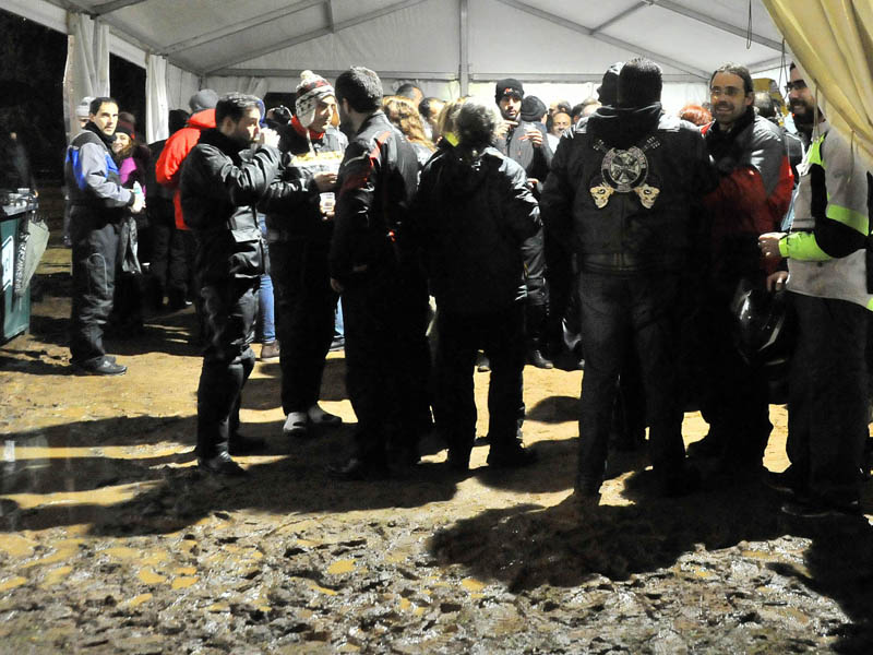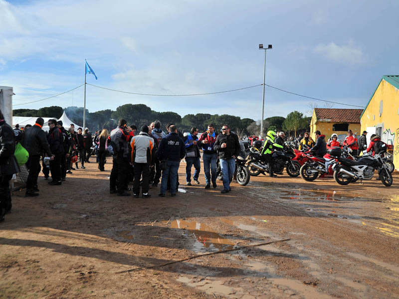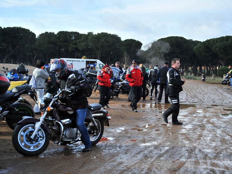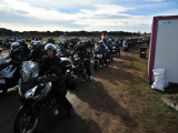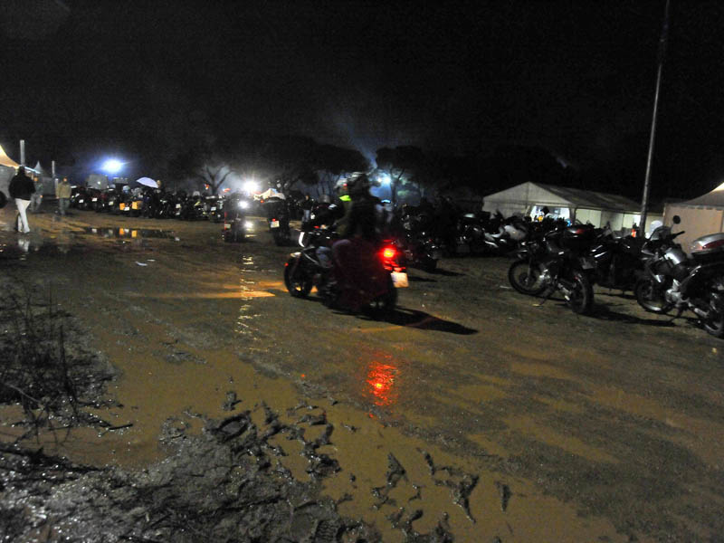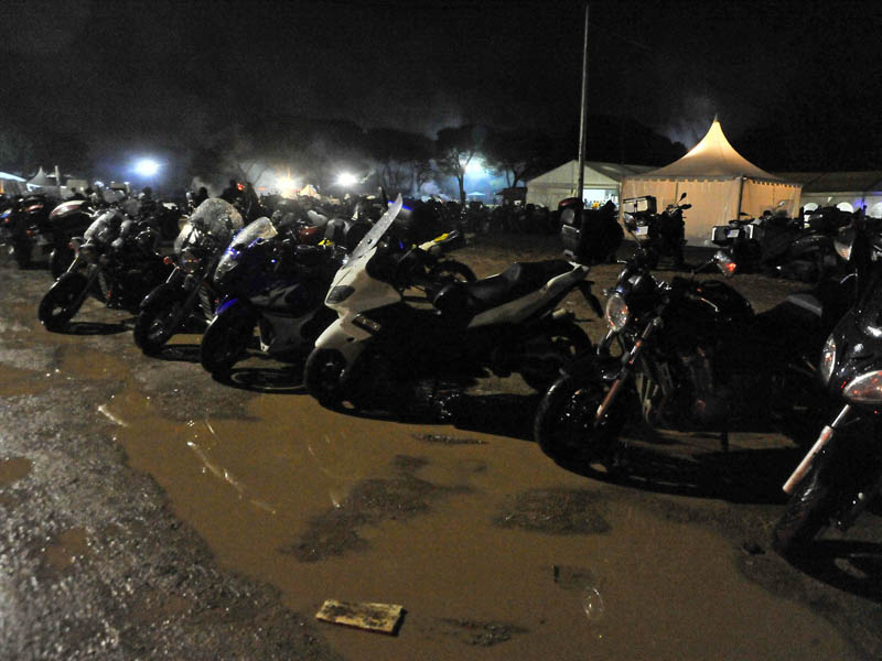 El sábado por la mañana, al llegar al recinto de la concentración, me encontré un panorama similar, ya se habían instalado un puñado de tiendas de campaña, dentro del recinto se podían encontrar unos pocos cientos de motos, los charcos y barro de la noche anterior habían ido a más (por suerte y al dejar de llover, no demasiado, de haber seguido lloviendo…), y, lo que me sorprendió, en cuestión de media hora, varios miles de motos junto a la entrada al recinto.