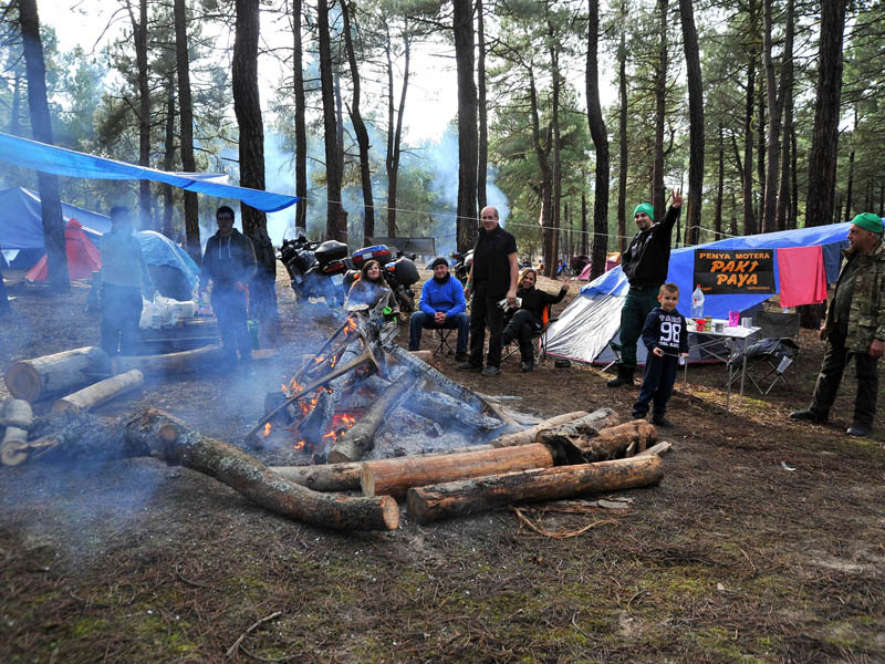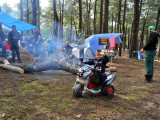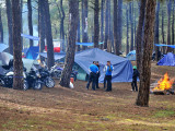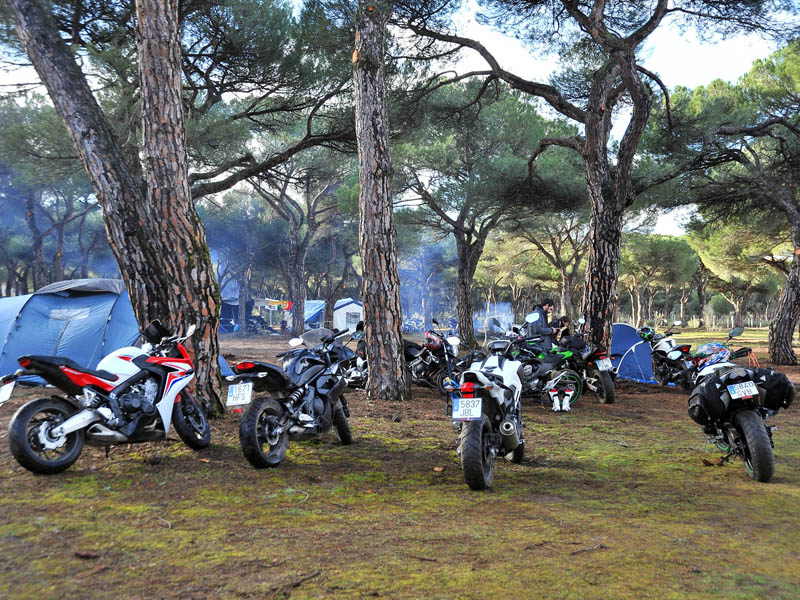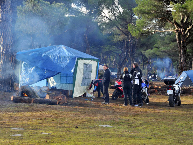 Por otra, que las instalaciones son perfectas para la realización de una concentración, con un extenso pinar que reúne todas las condiciones que al motero le gustan, protección ante los elementos, aspecto agradable y un subsuelo capaz de absorber cantidades ingentes de agua sin encharcarse. En Cantalejo llovió lo mismo que en Valladolid y, sin embargo, podías estar paseando todo el fin de semana por la zona de acampada sin encontrar un solo charco, a diferencia del barrizal que tuvieron que sufrir los aficionados que decidieron quedarse en Valladolid.