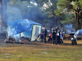 Desgraciadamente, según el sol se escondía, también lo hicieron la mayoría de presentes en el desfile, devolviéndonos al anochecer a la dura realidad de una zona de acampada, con un número de presentes comparable a los de una buena concentración de cualquier pequeño moto club, cualquier fin de semana, solo que estos pequeños moto clubes no cuentan con presupuestos de varios cientos de miles de euros…