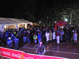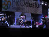 Mi primera toma de contacto con la concentración fue el viernes por la tarde, ya anochecido, en la que bajo una persistente lluvia me encontré la actuación de Emilio Zamora en el centro de la ciudad, actuación que contaba con muchos paraguas y pocos cascos alrededor…