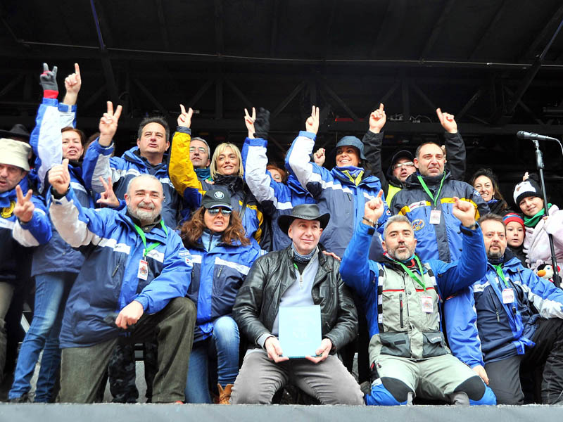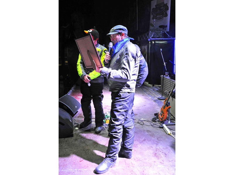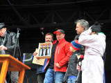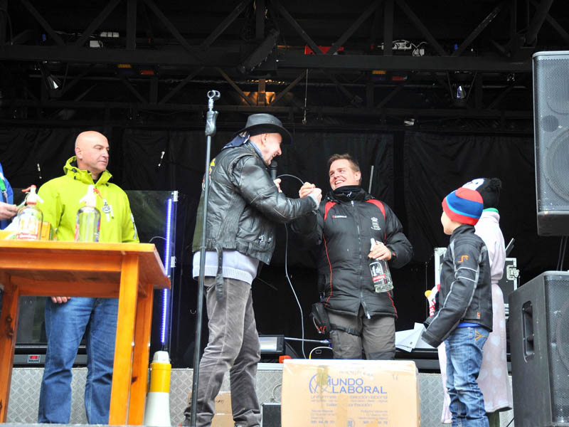 En un momento dado, se subió a Mariano Parellada al escenario para hacerle entrega de un Diploma “Pingüino de platino”, por su labor como organizador, fundador de Turismoto y creador de Pingüinos.