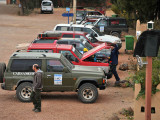 El domingo 6, tras el desayuno, se daría el primer briefing del raid, en el que los participantes aprenden el funcionamiento de cada etapa, exponen sus dudas, se entregan dorsales y se puede respirar el nerviosismo y la emoción por comenzar el rally. Además de saludar a los viejos y nuevos amigos, todos pudimos recibir a los participantes de un Suzuki Vitara cuya aventura para llegar hasta Meknes, ya es digna de un artículo, pues en su recorrido desde Barcelona hasta Tarifa, habían roto el retén del cigüeñal, el retén del cambio y el alternador…