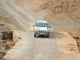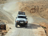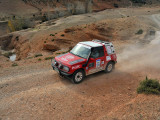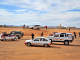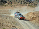 El jueves 10, realizamos un breve enlace por carretera hasta la población de Hassilabied, desde donde se daría la salida, por la pista ancha que sube en dirección norte hacia Erfoud. Unos Km. después se giraría a la derecha para internarnos por las pistas y montañas del norte del Erg Chebbi, donde pinchazos múltiples, averías varias y un buen puñado de coches perdidos, hicieron trabajar a la organización hasta tenerlos a todos “sanos y salvos” en la carretera.