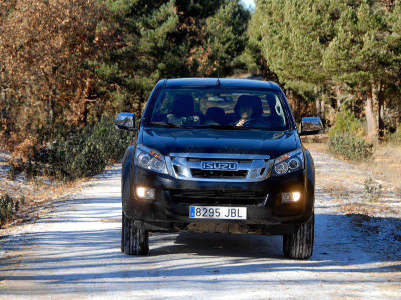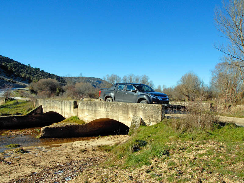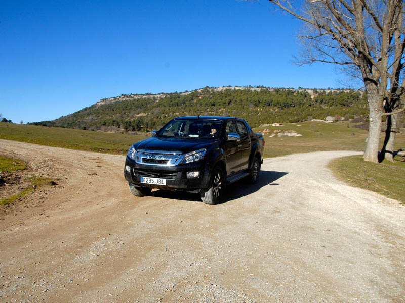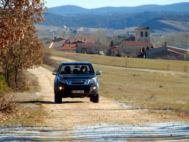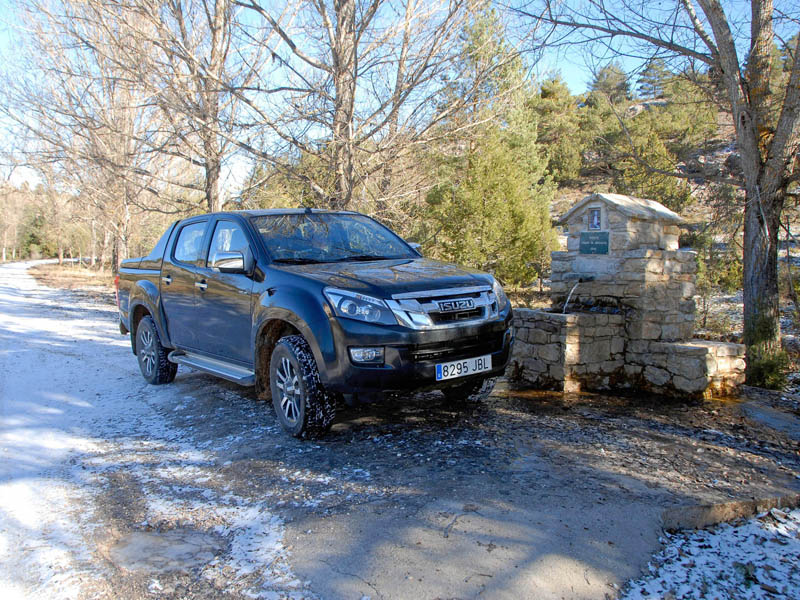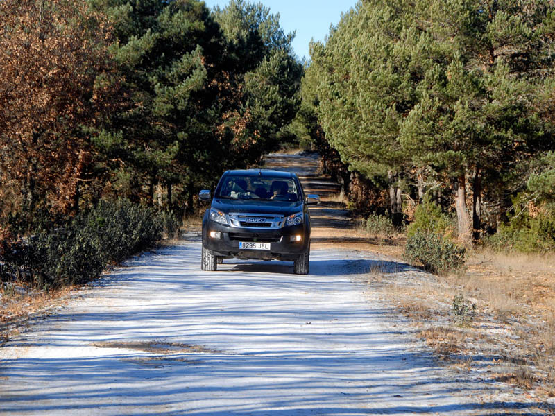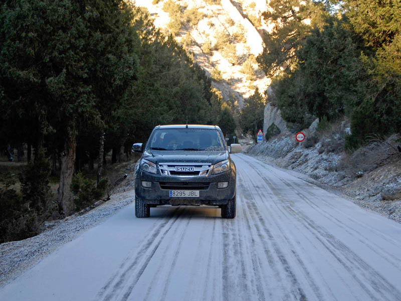Los numerosos charcos que nos encontramos por el camino son bloques de hielo, que se parten en mil pedazos bajo las ruedas de la Isuzu D-Max que, como en otras ocasiones en que prevemos que las pistas puedan estar complicadas, hemos utilizado para realizar esta ruta por su conocida dureza y capacidad off road.