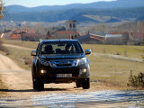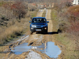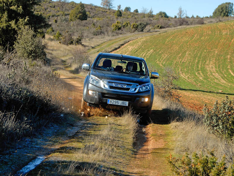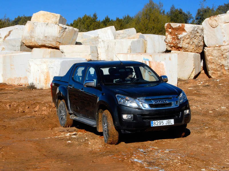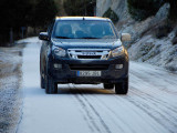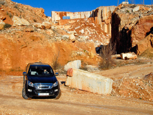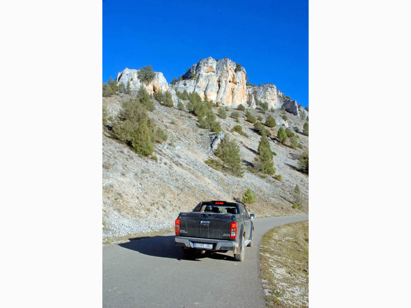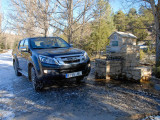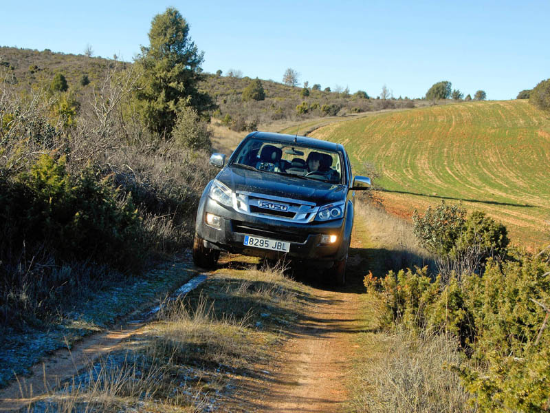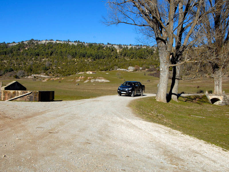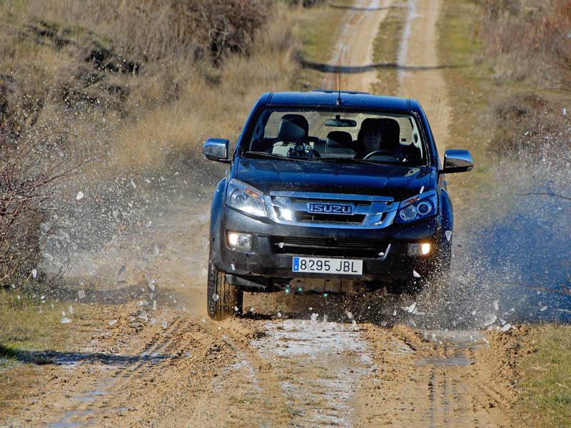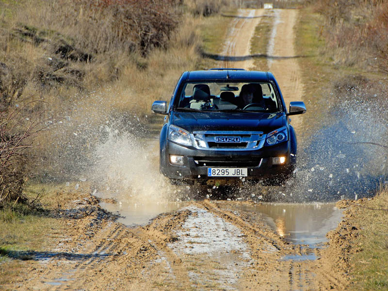 Los numerosos charcos que nos encontramos por el camino son bloques de hielo, que se parten en mil pedazos bajo las ruedas de la Isuzu D-Max que, como en otras ocasiones en que prevemos que las pistas puedan estar complicadas, hemos utilizado para realizar esta ruta por su conocida dureza y capacidad off road.