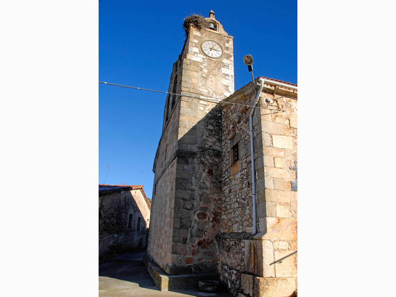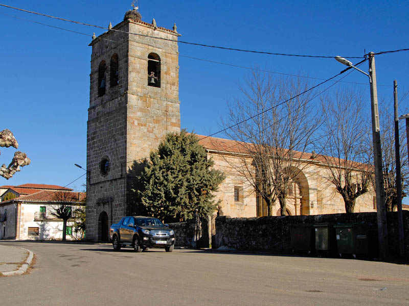 Tras hacer algunas fotos de Navas del Pinar antes de llegar, tras introducirnos en su casco nos dirigimos hacia su actual iglesia parroquial, que se terminó de construir en el siglo XVII, (puede que hacia 1660), con obras complementarias en el siglo XVIII. Su arco gótico de coro, anejo a la pared oriental de la torre, es del XV. El archivo parroquial conserva anotaciones a partir de 1620; el primer libro de fallecidos que se conserva data de 1714, y el de los nacimientos de 1728.