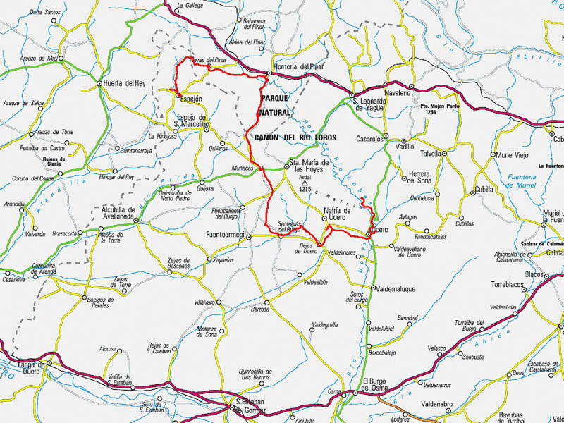 Puesto que la temática de la ruta de hoy era el Cañon del Río Lobos, para comenzar la ruta elegimos la población de Espejón, por estar situada en la provincia de Soria, provincia a la que “le apuntaremos” la ruta y ser un emplazamiento perfecto para llevarnos a cruzar a la provincia de Burgos donde realizaríamos un tercio de nuestro recorrido, de manera similar a como se reparte el espacio natural del parque.