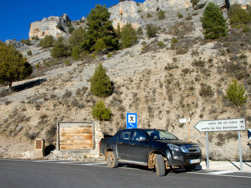 Tras terminar la ascensión de la pista, diferentes carteles y postes nos indican que entramos en el Parque Natural del Río Lobos, desde alguno de sus miradores se pueden obtener bellas imágenes. La pista es muy sencilla, apta para cualquier turismo, pero al menos no es asfalto y la sensación de estar en contacto con la naturaleza es mayor.