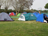 El césped junto al río, es en esta concentración, el principal hotel para los asistentes, ya que el pueblo carece de infraestructura hotelera y hay que desplazarse a los pueblos de alrededor si se quiere dormir en cama, lo que no le falta al pueblo son unos pocos bares en los que se puede comer de vicio (estamos en Segovia) y pasar largos y agradables ratos de charla con los colegas.