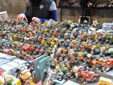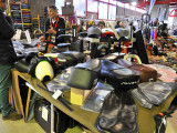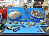 Como en años anteriores, la actividad comercial se completaba con el gran mercadillo de piezas, accesorios y complementos que es una de las secciones más activas y dinámicas de todo el Salón, donde decenas de expositores ponen al alcance de los aficionados cientos de productos relacionados no solo con las motos clásicas, sino con todo un mundo vintage que abarca desde la ropa y la equipación, hasta las cámaras de fotos antiguas, carteles, matrículas, maquetas y un largo etc. de objetos de colección.