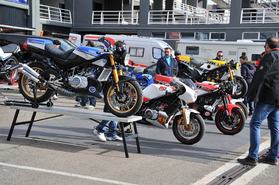 Un divertido concurso de Pin Up… y, sobre todo, la gran exposición que supone el poder ver todas esas motos (y coches, y camiones, y bicis, y…), que los propios particulares trajeron y que llenaron de vida y animación el paddock del circuito de Cheste.