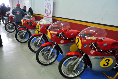 22 MV Agusta (que en los años 70 dominaban el Campeonato del Mundo de Motociclismo), eran algunas de las joyas que se podían admirar paseando de aquí para allá por el paddock, y junto a ellas algunas preciosas Norton, BSA, Seeley y, ni que decir tiene, una buena muestra de las motos nacionales de aquellos gloriosos 60 y 70 en que las Bultaco, Montesa, Ossa, Sanglas o Derbi paseaban su fama por el Mundo.
