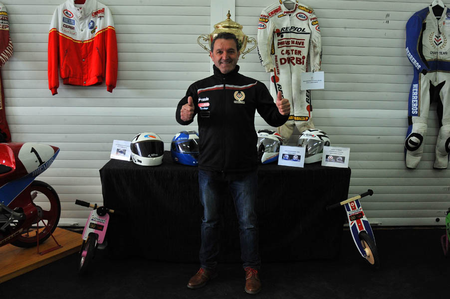 Champi Herreros organizaba además, una exposición con la moto con la que obtuvo el título mundial de 80cc en 1989 y en la que se podían ver monos, cascos y trofeos de su época como piloto.
