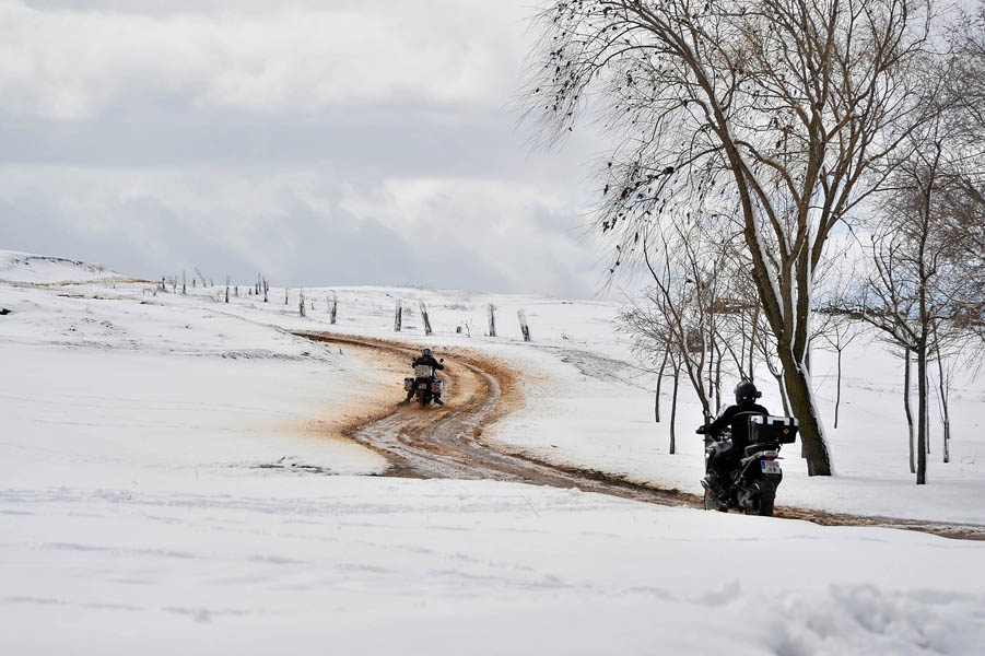 Con una capa de nieve de unos 10 cm. amanecieron las motos la madrugada del sábado, y ya sobre las 8´30h. empezó a llegar gente para montar el FoodTruck, la Carpa y los puestos. Poco a poco y con avisos de hielo en la carretera que une Boceguillas con Bercimuel, fueron llegando el resto de moteros, completando la prueba de la Búsqueda del Tesoro BMW.