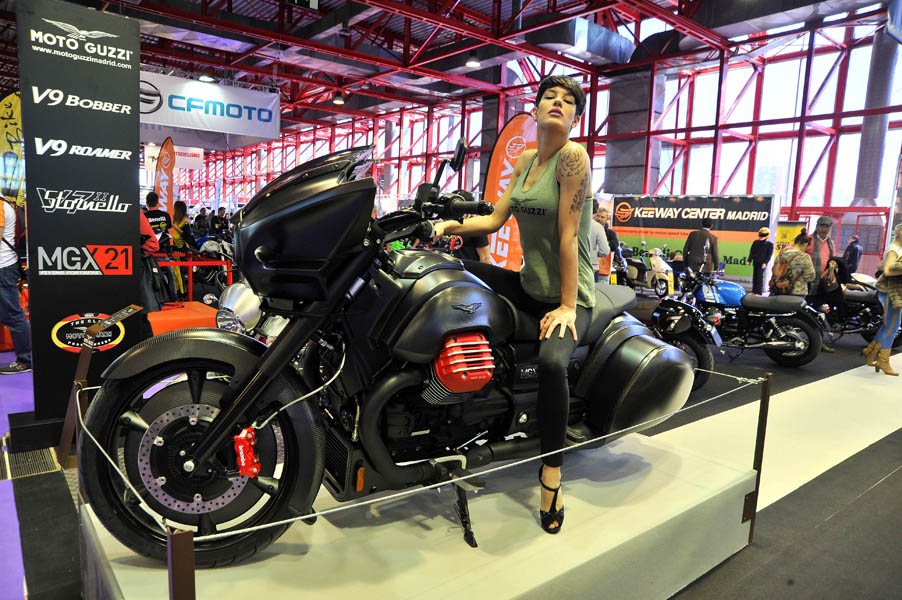 Moto Guzzi lucía las V9 Roamer y V9 Bobber, lo que vienen a ser las “Easy Cruiser” del Águila, sus Custom de media cilindrada, que además de su espectacular estética vienen equipadas con el nuevo bicilíndrico Euro 4 de 850 c.c. También, la marca de Mandello di Lario mostraba la MGX-21 “Flying Fortress” que por fin se produce en serie y que sin duda acaparará todas las miradas allí por donde pase.