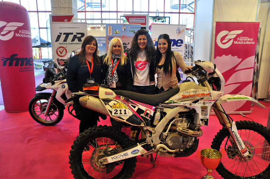 La Comisión Femenina de la Real Federación Motociclista Española reeditaba este año su participación activa en MotoMadrid y lo hacía con diversas actividades, como la ruta motera femenina, que tenía su punto de salida y llegada en el Salón y llevaba a las participantes, guiadas por Mar Acebes, a un recorrido por la sierra madrileña. En su stand se podía conocer la actividad que desarrolla esta entidad y pudimos ver algunas monturas que representan a cada una de las categorías del motociclismo que acoge en su seno: velocidad, trial, enduro, rallye TT y turismo.