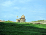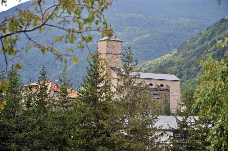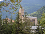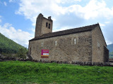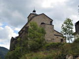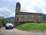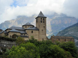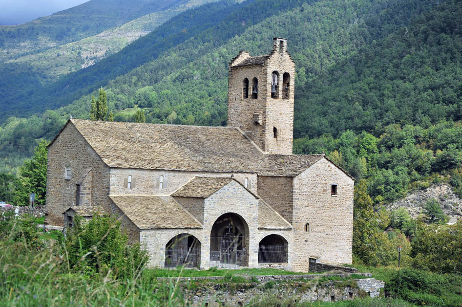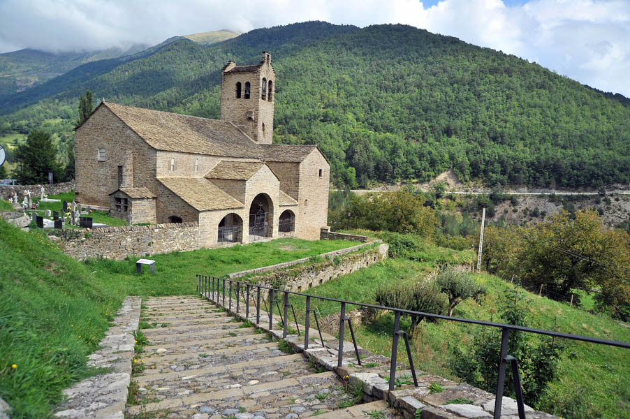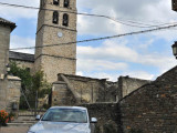 Tras pasar el Puerto de Cotefablo, paramos a hacer fotos del paisaje y seguimos hasta Linás de Broto, allí, aislada del pueblo, se encuentra la Iglesia de San Miguel, tiene una amplia nave y ábside con cabecera recta, sobre la que se levanta la torre del siglo XIII, declarada Bien de Interés Cultural (BIC), de un solo cuerpo, con aspilleras y matacanes, con carácter defensivo.