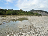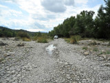 Salimos de Larrés cruzando el pedregoso rio Aurin, a la búsqueda de una pista que nos debería de llevar hacia el norte, a las inmediaciones de Arguisal y Escuer, más o menos paralelos a la N-260 que a su vez transcurre paralela al rio Gállego (a su derecha), y al Valle de Tena a su izquierda. Pero tras muchas vueltas, terminamos encontrando el paso cortado por un pequeño corrimiento de tierra claramente provocado por la lluvia. Media vuelta, pero el rato, buscando por entre pistas casi desaparecidas no nos lo quita nadie.