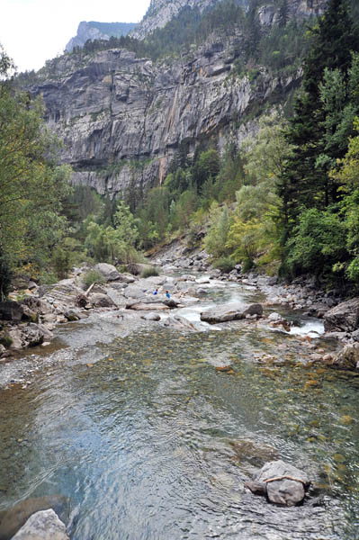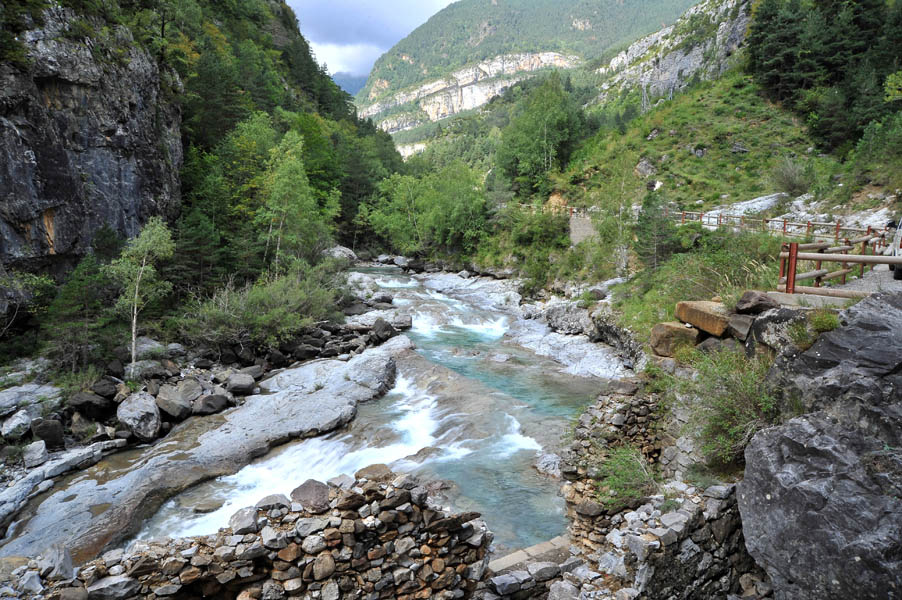 En Torla comeríamos ya de vuelta, pero antes nos quedaba acercarnos a la entrada del Parque Nacional de Ordesa y Monte Perdido. El Parque, se encuentra presidido por el macizo calcáreo más alto de Europa, el Monte Perdido que con sus 3.355m. es la cumbre más alta dentro del área protegida, y uno de los tresmiles más emblemáticos del Pirineo.