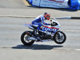 Con unas fibras de KTM adaptadas, un amortiguador trasero de BMW, asiento sobre-elevado, estriberas bajadas y utilizando los entrenamientos para saber cómo iba la moto, ha sido capaz de clasificarse y de terminar las tres carreras en las que ha participado, en las que evidentemente lo de menos eran los tiempos, que fue mejorando hasta lograr terminar 16º en la última carrera de Supertwin, sino el hecho de haber sido capaz de volver a competir, cuando nadie daba un duro porque fuera capaz de volver a andar.