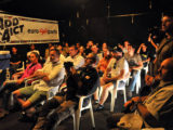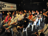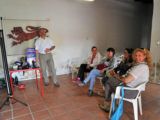 La charla sobre el Dakar se realizó al aire libre, lo que permitió que fuese seguida con interés por muchos aficionados