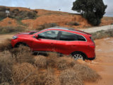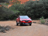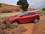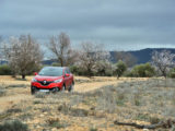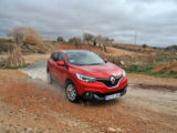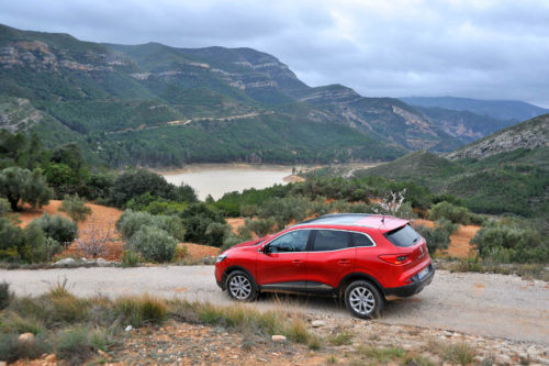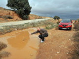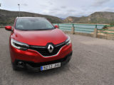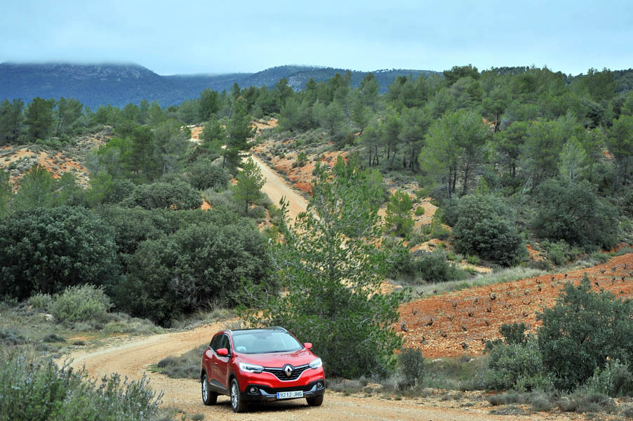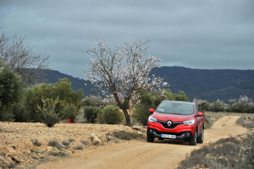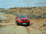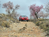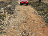Poco a poco la pista se va estrechando y llenándose de piedras sueltas, aunque nada de esto parece molestar de momento al Renault Kadjar que hoy nos acompaña. En un momento dado llegamos a un arroyo que lleva más agua de la que parece, lo que nos obliga a bajarnos y mirar la profundidad. Decidimos cruzarlo poniendo primero la posición del selector de tracción en el modo bloqueo de diferencial y el Kadjar pasa sin inmutarse a pesar de unos rulos de Salsola amontonados en el lecho que hay que sacar empujando con el morro.