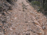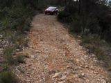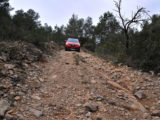 Seguimos nuestro camino y, en ocasiones, la pista se torna más complicada, con algunas zonas llenas de profundos regueros que llegan a dejar el coche en cruce de puentes y que hay que tomar con precaución para proteger los bajos.