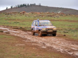 De repente, una larga subida que en la edición de primavera supuso un escollo insalvable para los coches menos potentes que hubieron de ser remolcados, en esta ocasión se encontraba llena de profundas roderas y de un deslizante barro que hacía difícil mantenerse en pie.