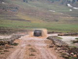 Con menos nieve que en la ocasión anterior (aunque también la pisaron), en esta, fueron el agua y el barro los protagonistas que se ocuparon de poner en aprietos a todos los vehículos (incluidos 4×4), especialmente en el último tercio de la etapa, tras haber pasado por las inmediaciones de la estación de sky de Mischiffen donde los enormes charcos fueron los encargados de “entretener” al personal.