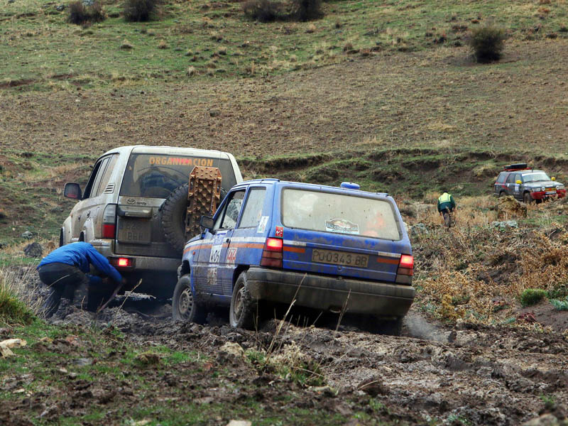 Mediada la etapa, un paso arenoso ponía en aprietos a los 4×2, que a estas alturas ya habían alcanzado “acuerdos” de colaboración con algún 4×4 para eslingarles cuando las cosas se ponían complicadas, y tras algunos pinchazos y pérdidas de última hora, todos cruzaban la meta con mejor o peor puntuación pero con toda la tarde por delante a su disposición.