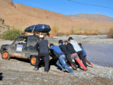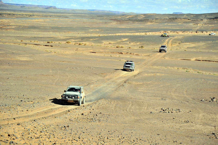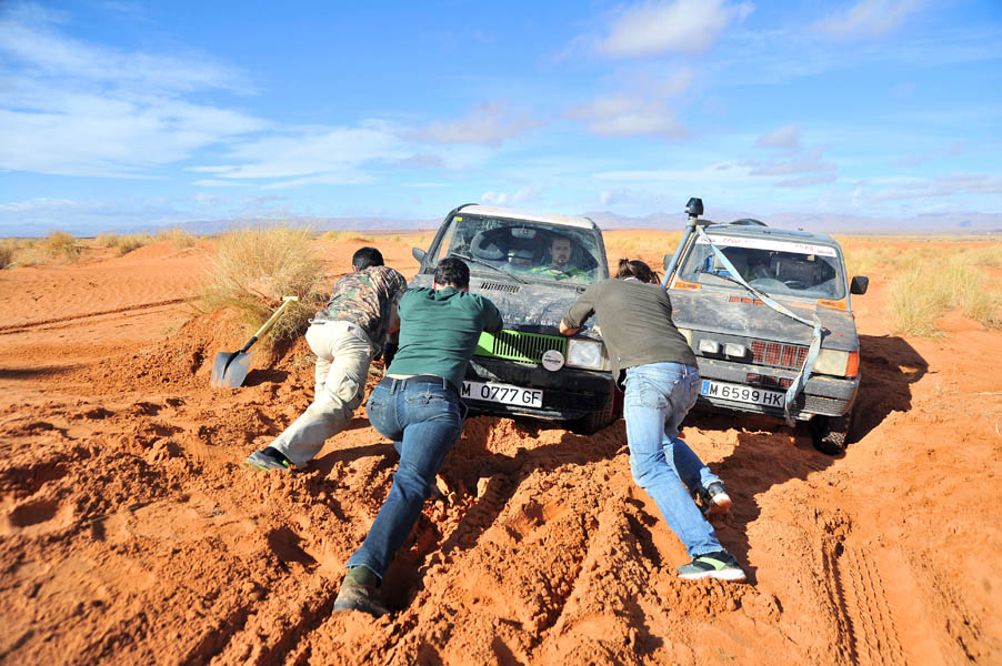 En esta ocasión las cosas no fueron tan duras, al estar la arena mucho más firme debido a las recientes lluvias, sin embargo, los más reticentes a bajar presiones, los coches menos potentes y los menos experimentados, tuvieron que bregar con planchas y palas en una jornada que casi sin darnos cuenta, nos llevaba hasta la ciudad de Erfoud, a las mismas puertas del desierto.