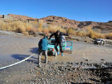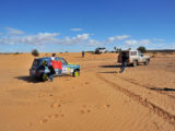 Después, una subida complicada, una pequeña duna y un gran río de arena, harían trabajar a los ocupantes de los 4×2 que, de nuevo, alcanzarían la meta a la hora de la comida y les permitiría descansar de cara a la larga jornada que les esperaría al día siguiente.