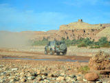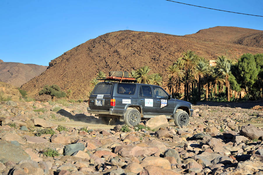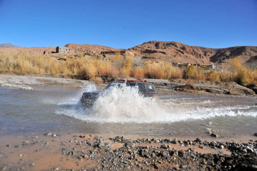 Una etapa en la que disfrutar de los impresionantes paisajes montañosos que el Atlas ofrece y en la que vadear ríos (que a más de uno se le atragantaron), bordear acantilados, ver aparecer oasis tras el giro de una curva… para terminar en un lujoso hotel en la ciudad de los estudios de cine más famosa de África: Ouarzazate.