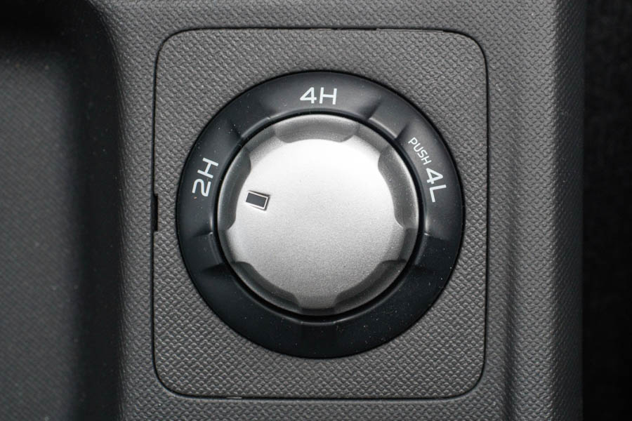 La tracción sigue siendo un sistema 4×4 a tiempo parcial, esto es, normalmente circula en tracción trasera (2H), y cuando conectamos la tracción total (4H), a través de la ruleta situada junto a la palanca de cambios, le damos tracción a las ruedas delanteras. Al carecer de diferencial central, la caja transfer envía el 50% de par tanto al eje delantero como al trasero. Con la misma ruleta podemos seleccionar las reductoras (4L).