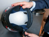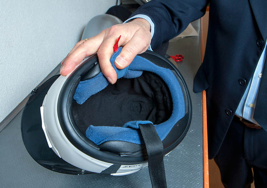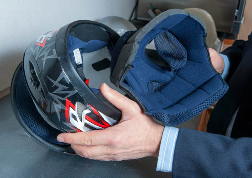 2º Se extrae del interior el almohadillado estándar que trae el casco, sin modificar los elementos de seguridad del mismo ni la estructura del casco.
